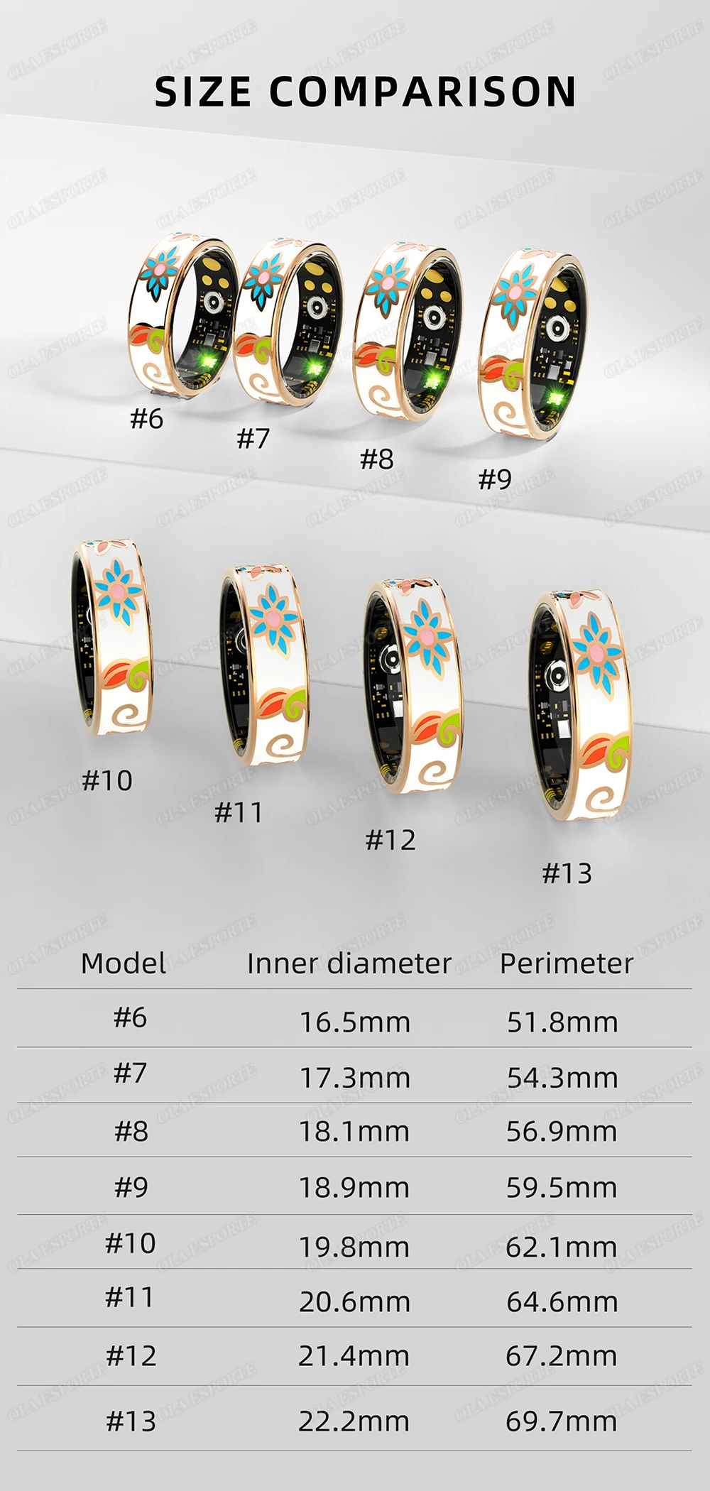 *Ring Internal Diameter(mm):6#16.5mm,7#17.3mm, 8#18.1mm, 9#18.9mm, 10#19.8mm,11#20.6mm, 12#21.4mm、13#22.2mm