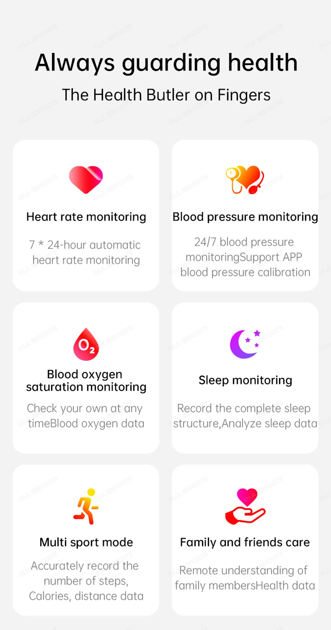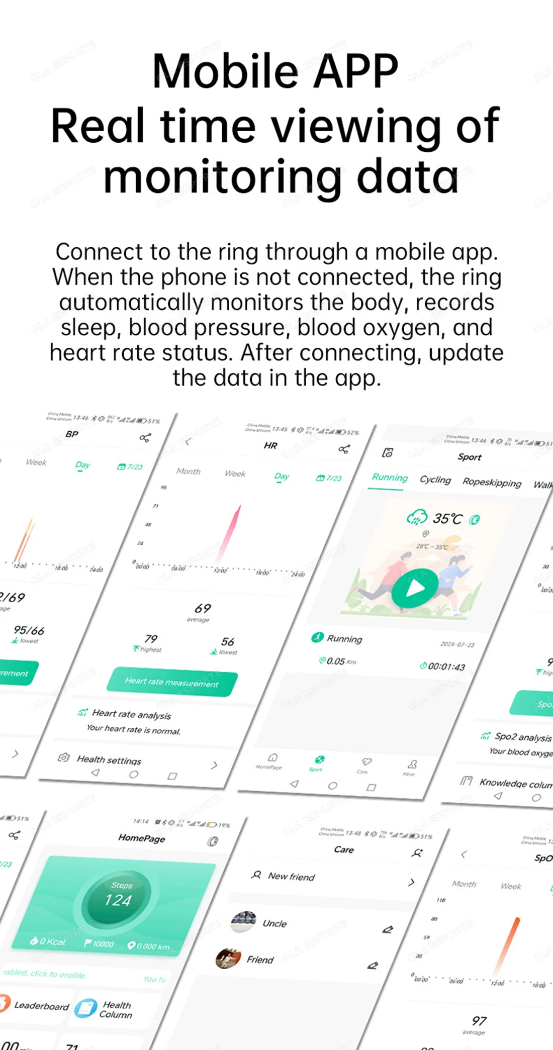 3. Multifunctional: This ola esporte intelligent ring offers various functions, monitoring your heart rate, blood oxygen, sleep patterns, and step count.