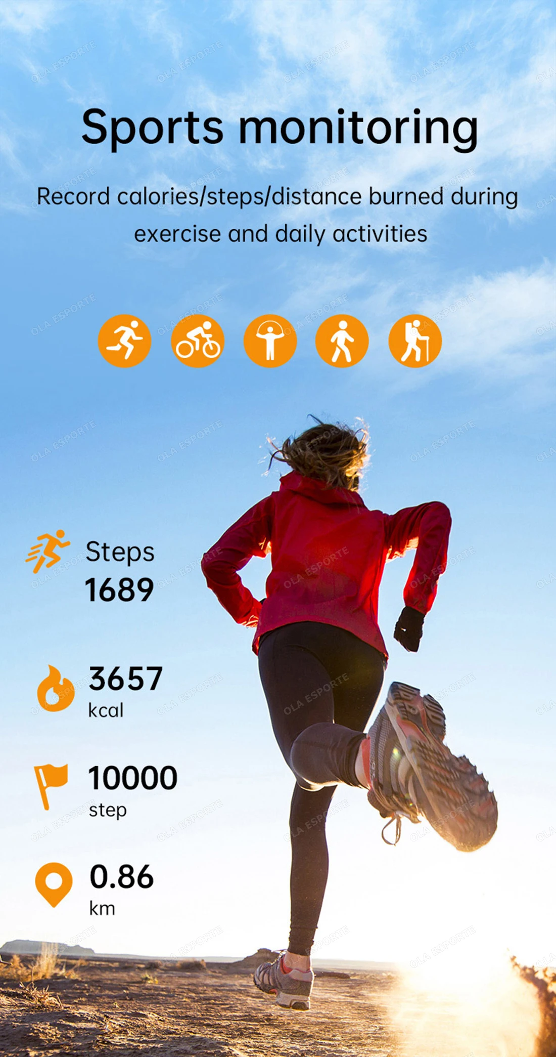 [Multi sport mode]Accurately record thenumber of steps,Calories, distance data