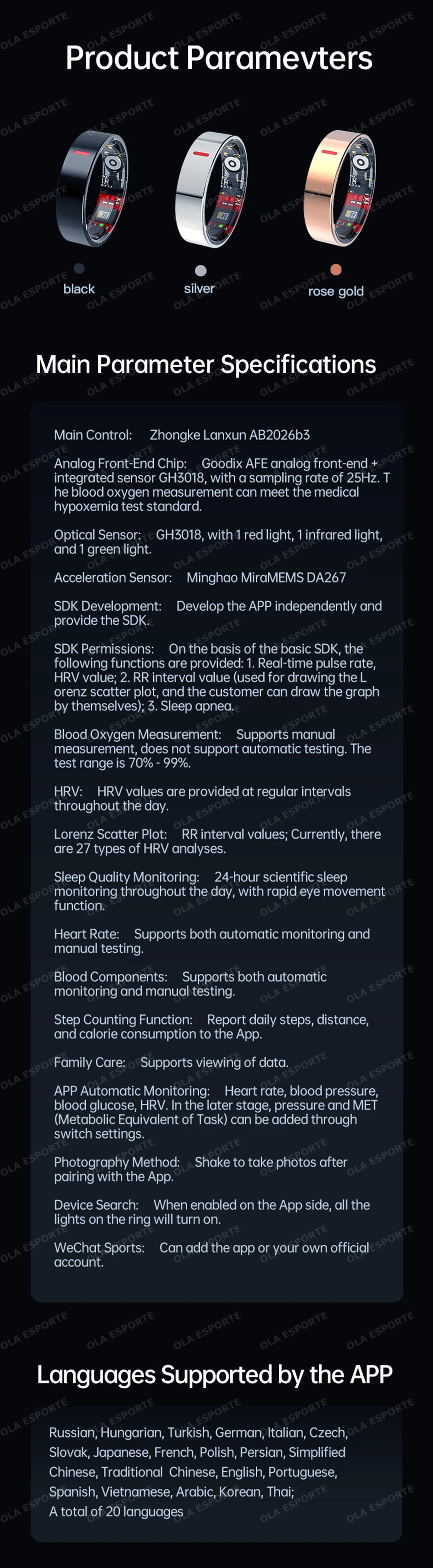 Compatibility: Works with Android 5.1+ & iOS 8.0+ via H Ring App.