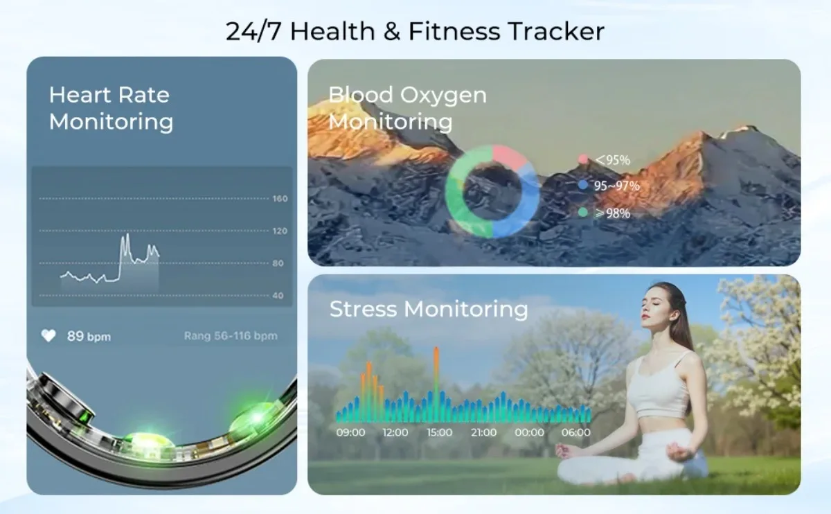 【Health】24/7 monitoring: HR/SpO2/stress/sleep/skin temp/HRV analysis