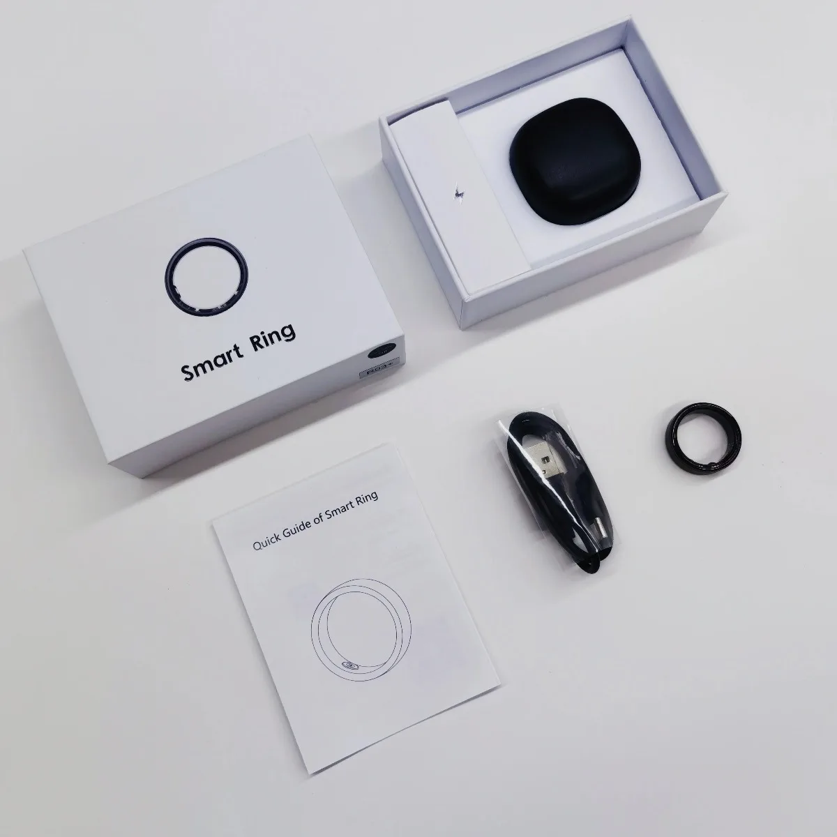 1x smart ring, 1x charging box, 1x ring charging cable, 1x charging box charging cable