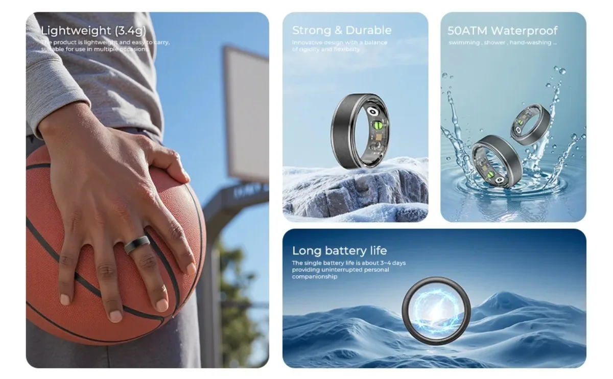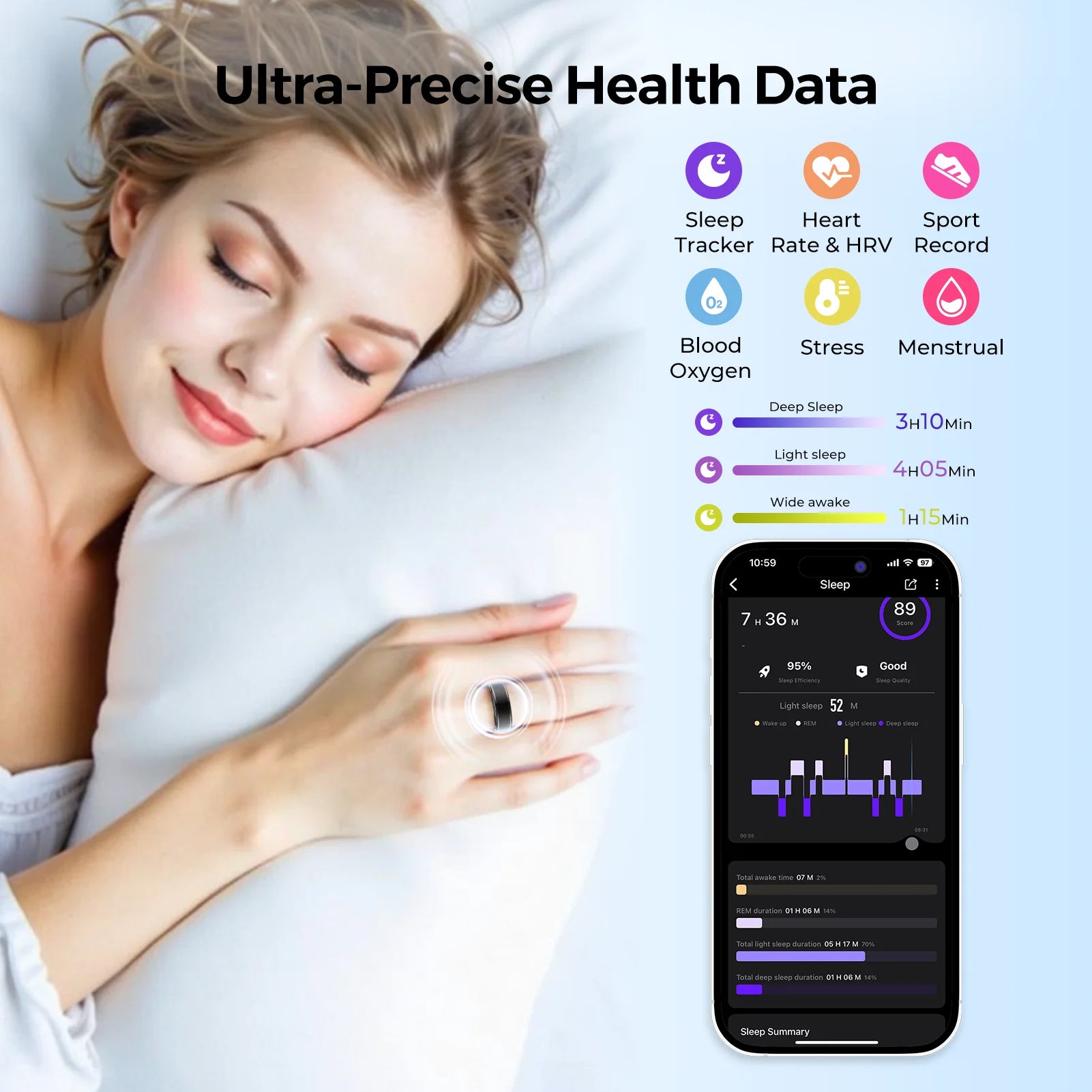 Smart Rings Bluetooth Gesture Swipe Control Sleep Heart Rate Oxygen Monitoring Multi Sports Modes Waterproof Women Health Ring