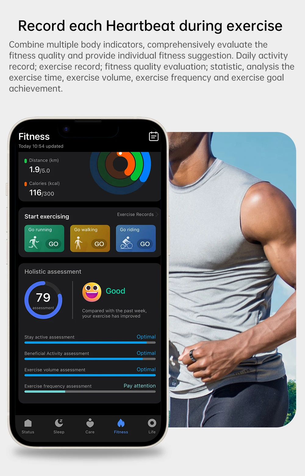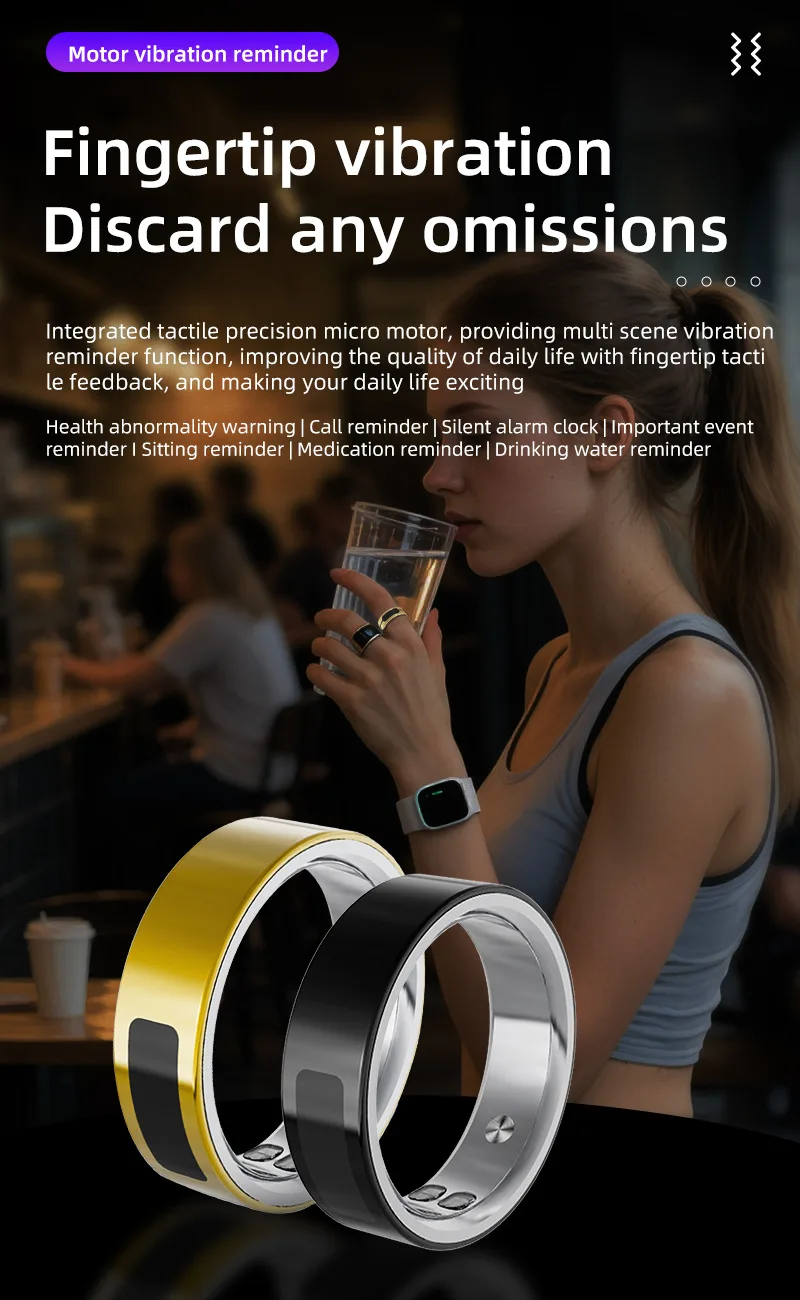 If your heart rate is too high or too low, the ring vibrates 3 times to warn you instantly.