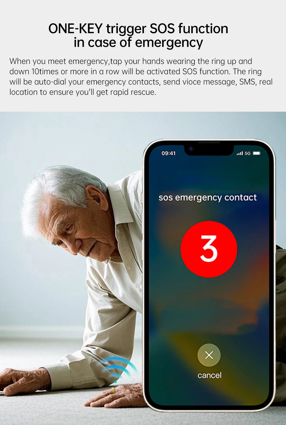 SOS Emergency( when you are in danger, touch the touch area continuously more than 10 times, and it will automatically call the emergency contact, send a help message and your current location.